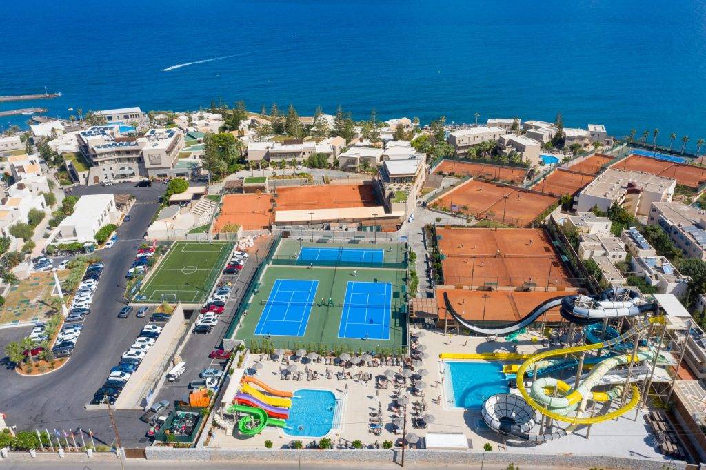 Tijdens deze tennisreis verblijven jullie, afhankelijk van het aantal gekozen nachten, een bepaalde periode in een fantastisch luxe hotel in de buurt van Chersonissos. En nee, geen zorgen. Dit hotel ligt op een prachtige rustige plek aan het strand. Jullie hebben iedere dag twee uur tennistraining. Op de aankomst- en vertrekdag plannen we in overleg tennistraining in.