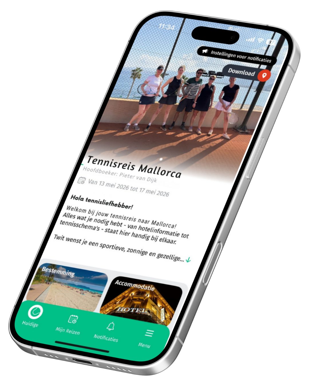 Boek je een tennisreis bij Twit? Dan krijg je toegang tot je eigen persoonlijke reisapp. In deze app vind je alle onderstaande informatie handig bij elkaar!